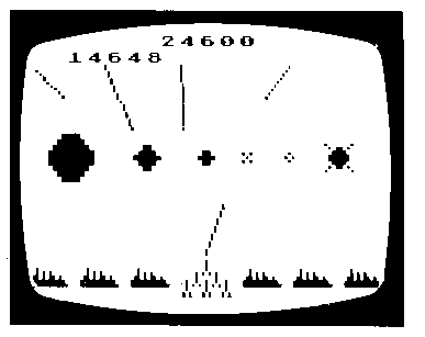 The tremendous value of graphics indirection and all those modifiable registers in the hardware now becomes obvious. With display list interrupts, every one of those registers can be changed on the fly. You can put lots of color, graphics, and special effects onto the screen. The most obvious application of DLls is to put more color onto the screen. Each color register can be changed as many times as you have DLls. This applies to both playfield color registers and player color registers. Thus, you have up to nine color registers, each of which can display up to 128 different colors. Is that enough color for you? Of course, a normal program would not lend itself to effectively using all of those colors. Too many DLls start slowing down the whole program. Sometimes the screen layout cannot accommodate lots of DLls. In practice, a dozen colors is easy, two dozen requires careful planning, and more than that requires a contrived situation.